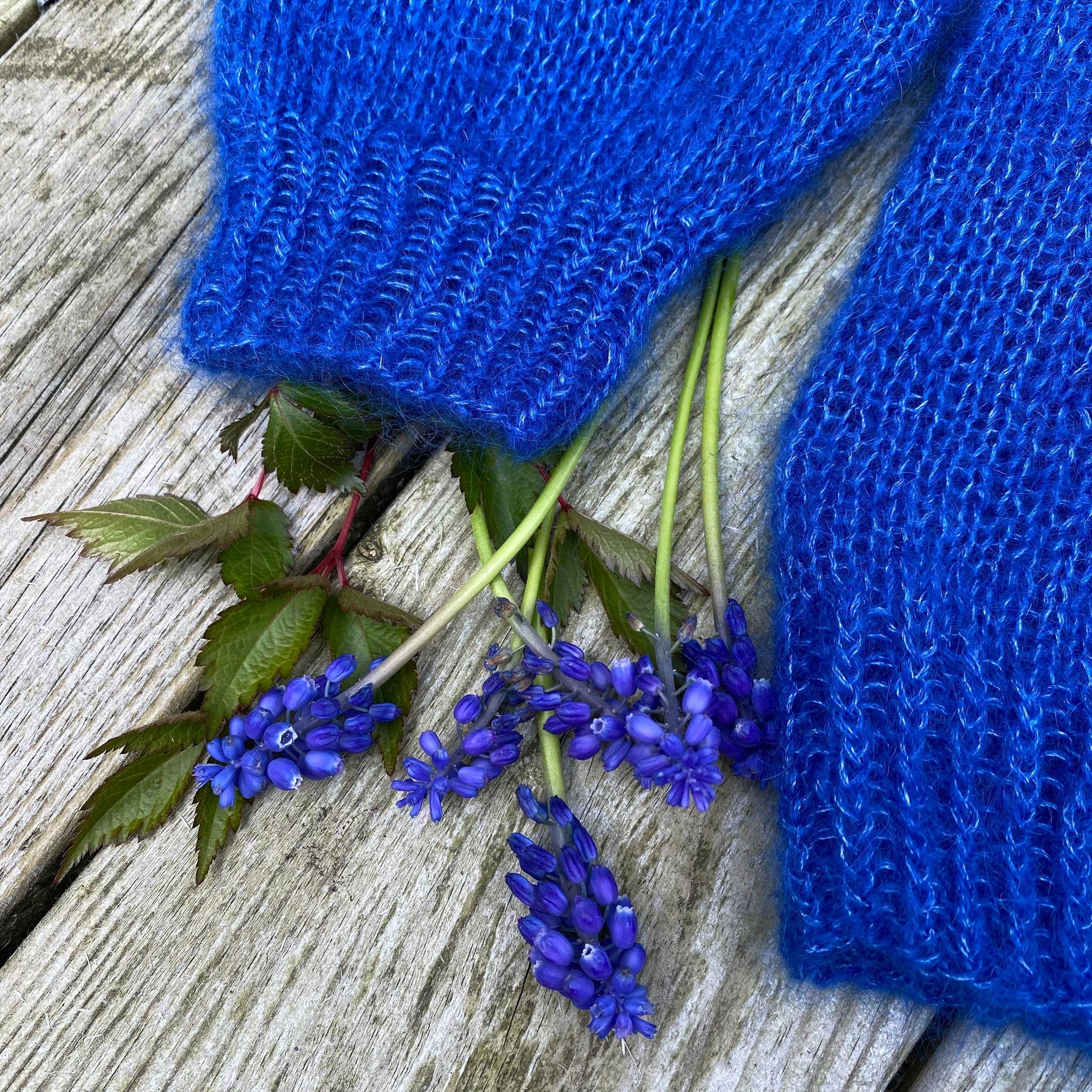 Strikkes i to tråder kidsilk nedenfra og opp, raglanfelling.