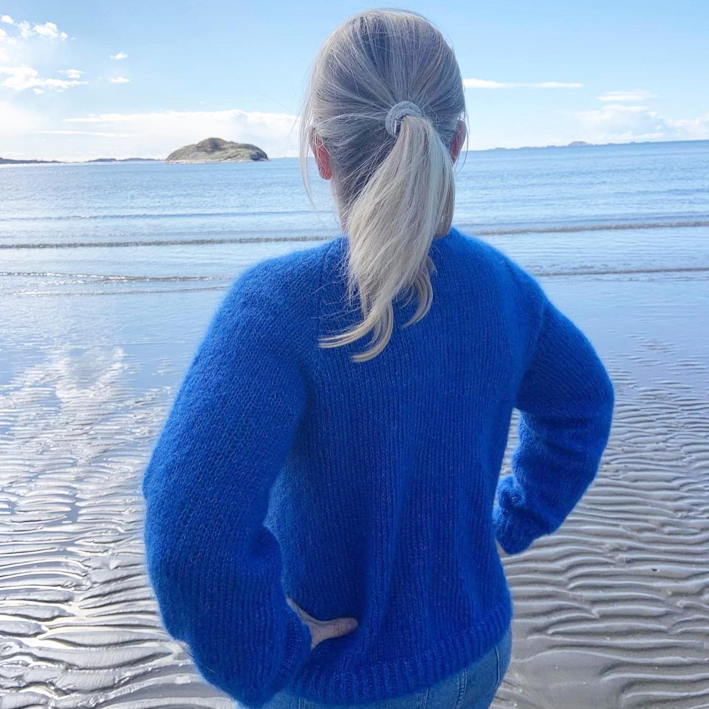Kjempefin genser som kan brukes til det meste. Strikkes i to tråder Drops kidsilk nedenfra og opp med raglanfelling.