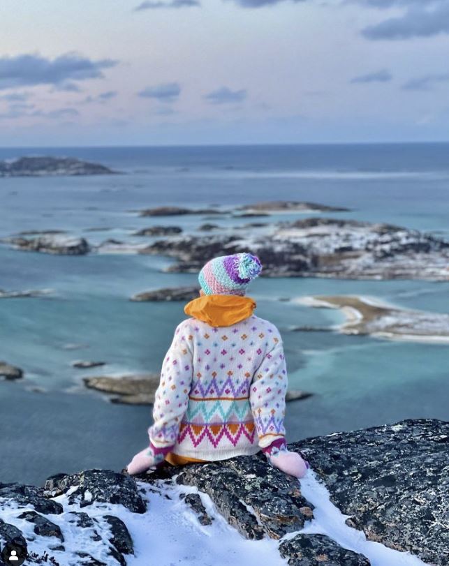 Kristina genseren – Nydelig genser med mønster i flotte farger, designet av Pudderpiken.