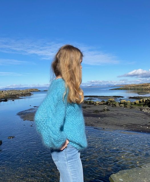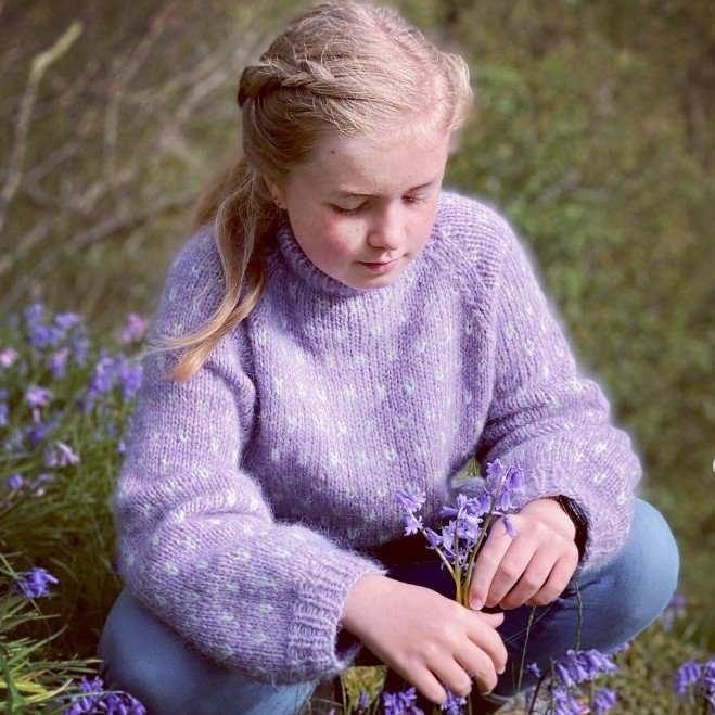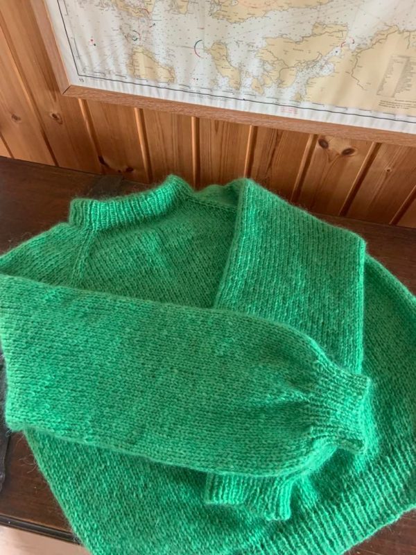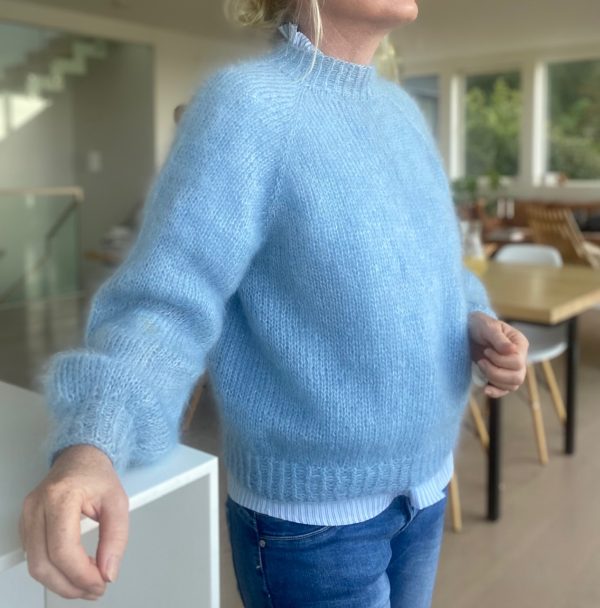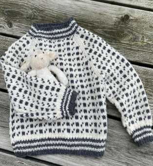 Mjuk, designet av Annige er en deilig, myk genser. Lettstrikket raglangenser med mønster.