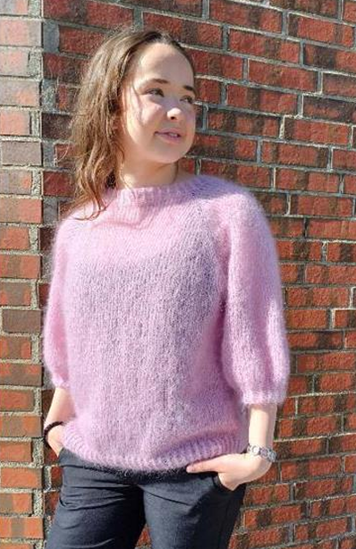 Mjuk, designet av Annige er en deilig, myk genser. Lettstrikket raglangenser med mønster.