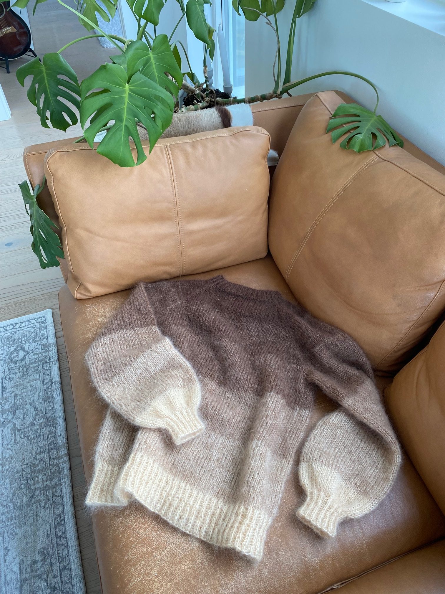 Nyanse, designet av Annige er en enkel glattstrikket genser med fargenyanser. strikkes med trippel tråd kidsilk